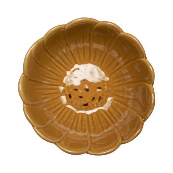 Denne blomsterformede oker skålen er liten og sjarmerende, perfekt til bruk for sukker, krydder eller oljer. Den er dekorativ nok til å stå fremme som en del av innredningen. Skålen er tilgjengelig i flere farger, slik at du kan lage et vakkert sett eller bruke dem individuelt for et mer variert uttrykk. Ideell for å tilpasse etter ditt eget behov eller interiørstil.