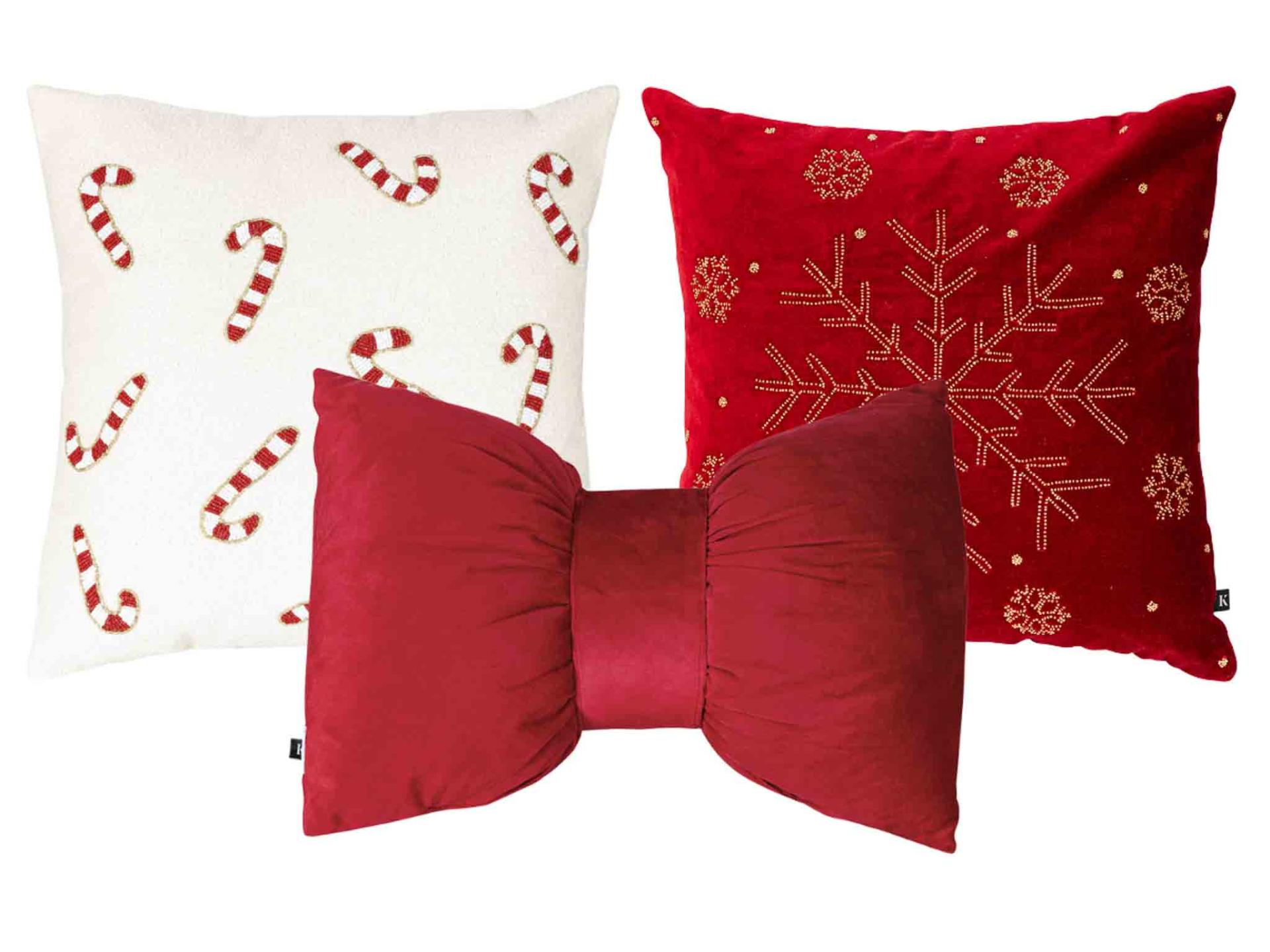 Denne putekombinasjonen bringer frem den søte og lekne siden av julen med et friskt innslag av candycanes. Den store røde sløyfeputen fungerer som et blikkfang og gir et trendy uttrykk. Den røde velurputen med snøkrystallmønster tilfører eleganse og binder helheten sammen. Perfekt for deg som ønsker en klassisk rød jul med et hint av humor og julemagi.