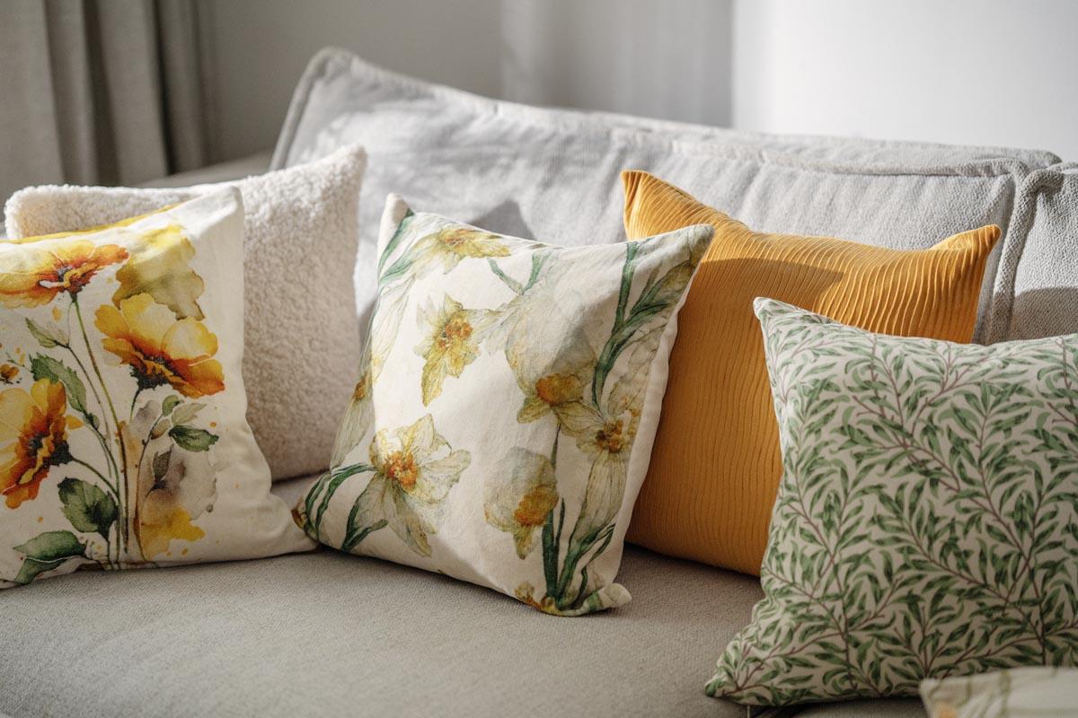En enkel måte trylle om sofakroken til den riktige påskestemningen er å bytte putetrekk med påskemønster. I tillegg kan du også sette noen vaser med gåsunger eller vårlige blomster og lekre påskeskåler, så er stuen klar til påskekos.
