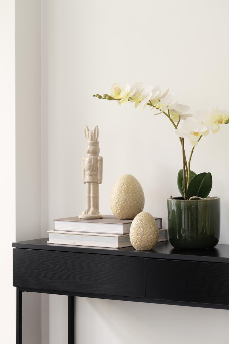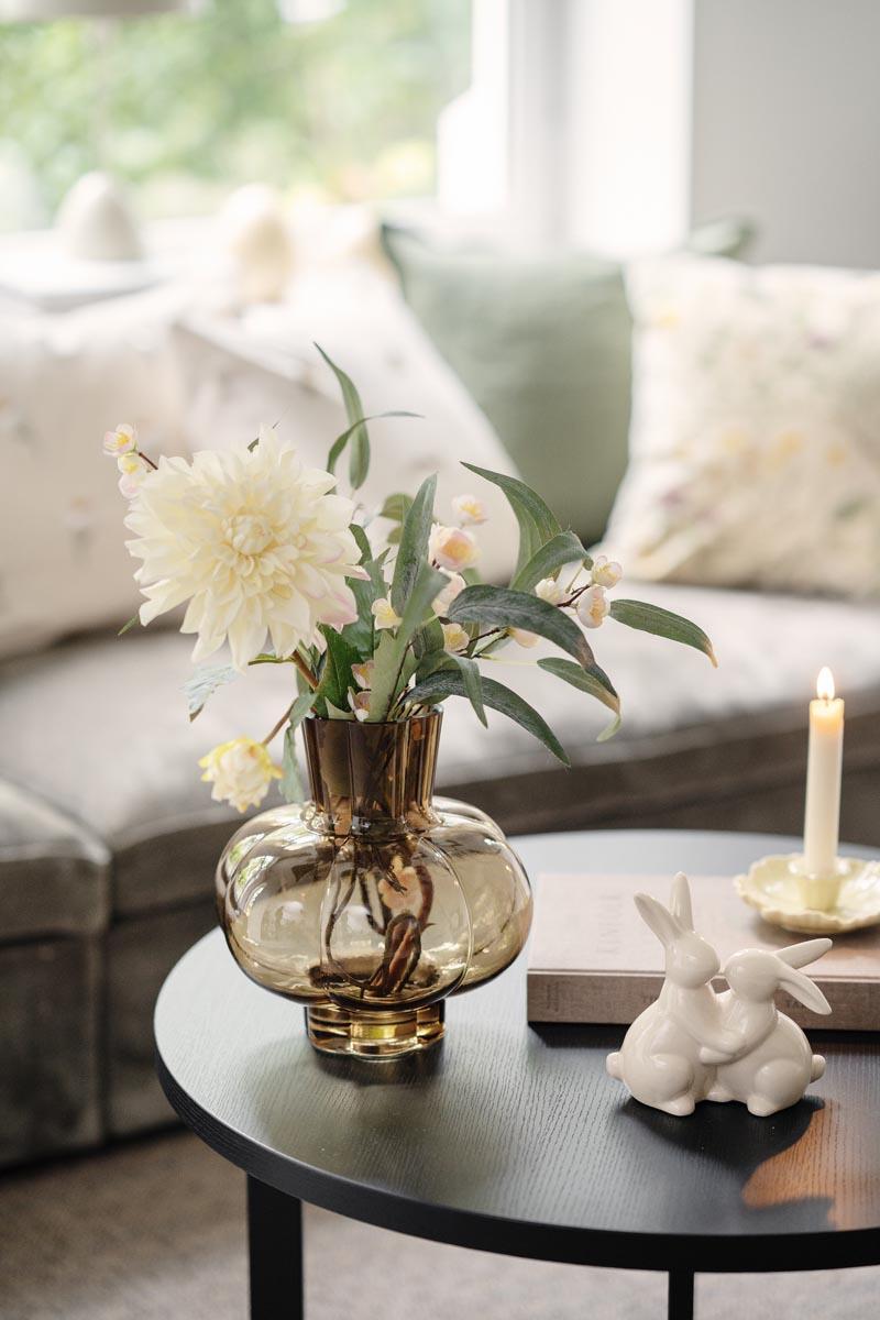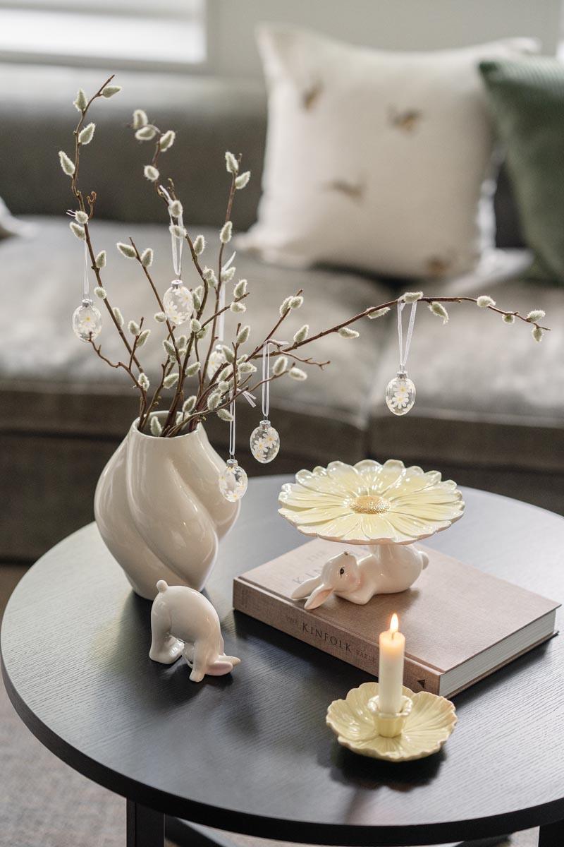 Påsken behøver ikke å være gul og klassisk og du kan enkelt gi påskepynten en moderne og og delikat vri med et mer dempet interiør. Klassiske figurer som påskeharer og fine glassegg, i farger som beige og duse rosatoner. Fargene gir også en forsmak på våren og mye kan brukes lenger enn bare til påske. Sett sammen dine favoritter og form ditt eget påskeuttrykk med fargene du liker. Vi har satt sammen noen forslag til hvordan du kan pynte til påske med annen vri.