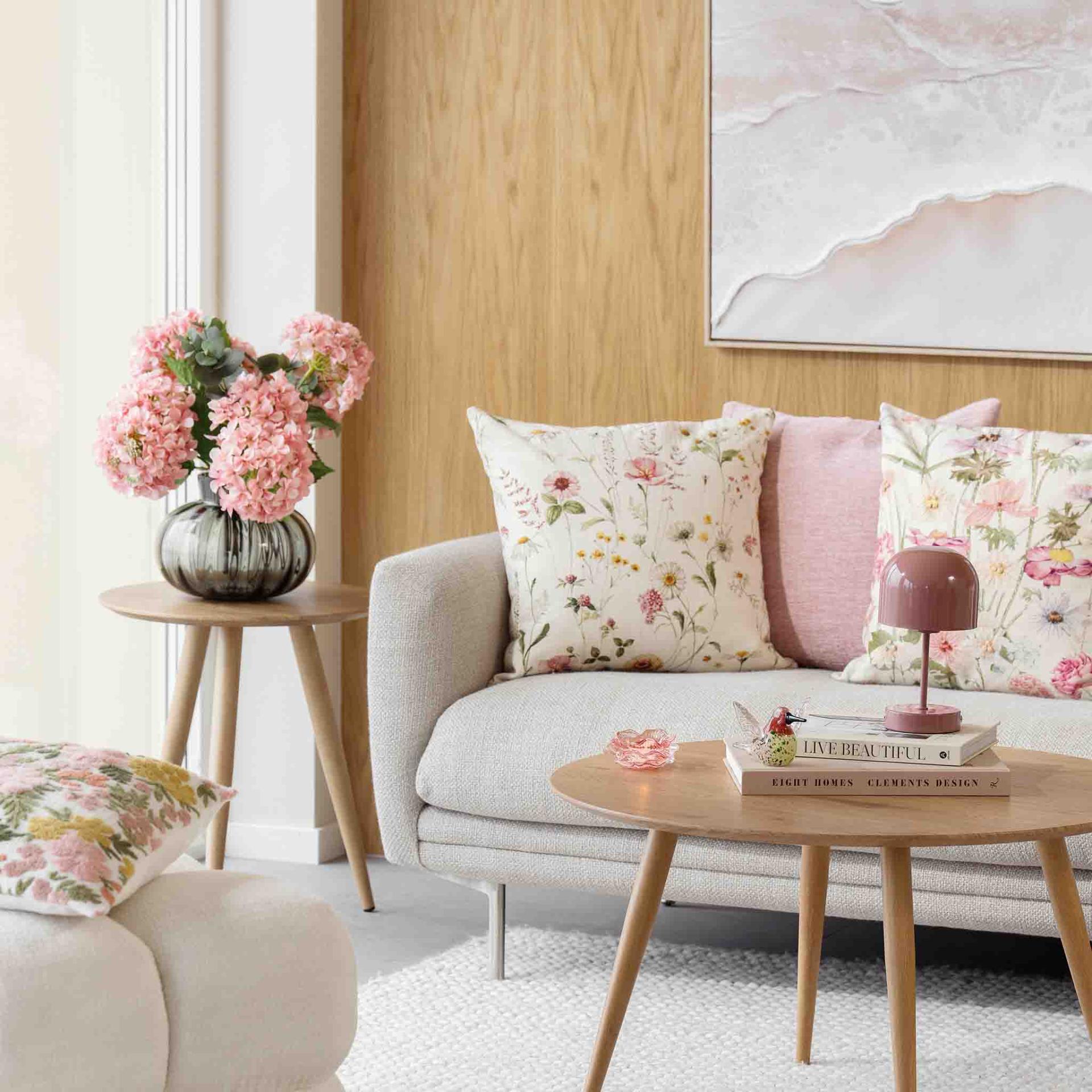 Middelhavsinspirasjon møter nordisk ro i en lun og harmonisk sommerstil. Duse blomsterfarger og naturlige materialer gir et lett og varmt uttrykk.