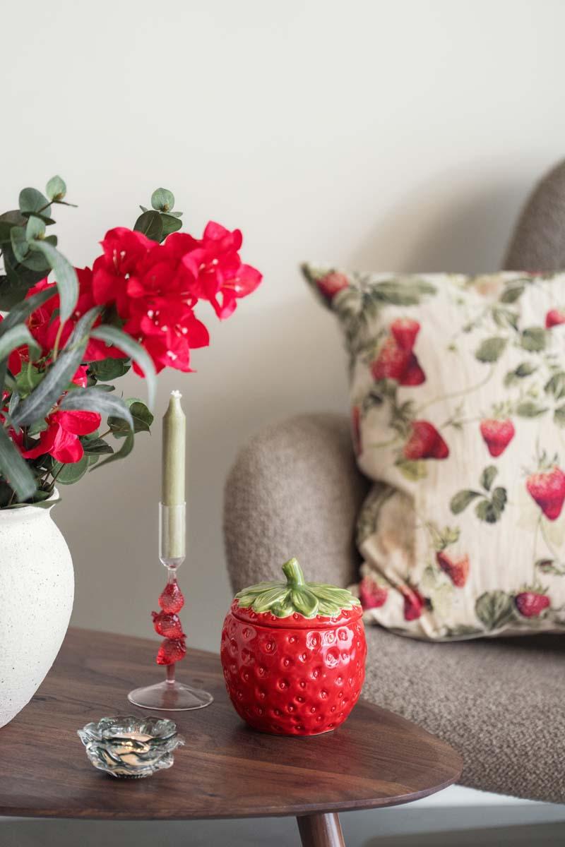 - Interiørdetaljer som vaser i farget glass (husk frodige buketter), lysfat og lysestaker i matte farger og speiloverflater.