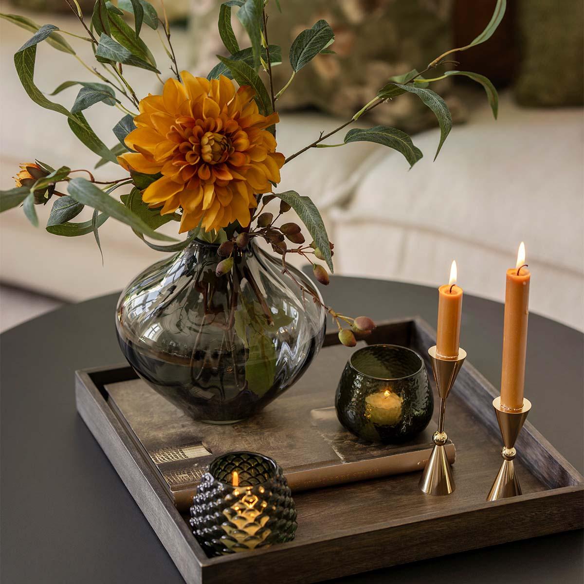 Dype bærtoner, velur og mørkt tre skaper en lun og luksuriøs stemning. Kolleksjonen kombinerer det delikate med det mystiske – akkurat passe dristig.
