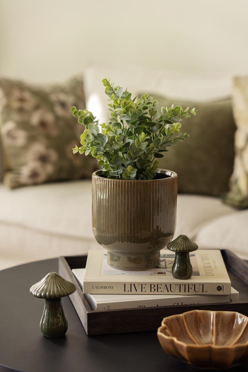 Grønt danner grunnlaget for denne interiørtrenden, sofistikert vintage. Med røtter i engelske herregårder bringes klassiske elementer inn i en moderne hverdag. Vintage-inspirerte interiørdetaljer gir det rommet karakter og dybde. Det skapes en følelse av eleganse, samtidig som det hele balanseres av en nordisk enkelhet. Gull, farget glass og mørkt tre gir en følelse av luksus, mens detaljer fra art deco tilfører struktur og glans.