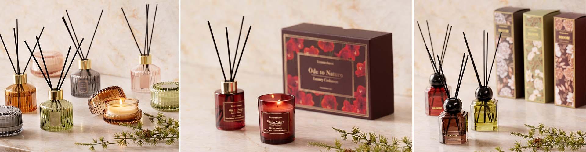 Plasser friske, søte og milde dufter i hjemmet. Skap en behagelig aroma og atmosfære ved hjelp av duftpinner og romdufter etter din smak.