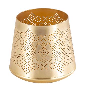 Eyla lyslykt på 10 cm i gull tilfører en subtil eleganse til enhver innredning. Denne kompakte lyslykten gir et mykt, stemningsfullt lys og passer perfekt på bordet eller hyllen.