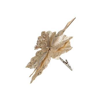 Legg til en touch av eleganse i ditt juletre med vår vakre blomst på klype i gull. Denne delikate juletredekoren kombinerer luksuriøs gullfarge med en naturlig blomsterdesign.
