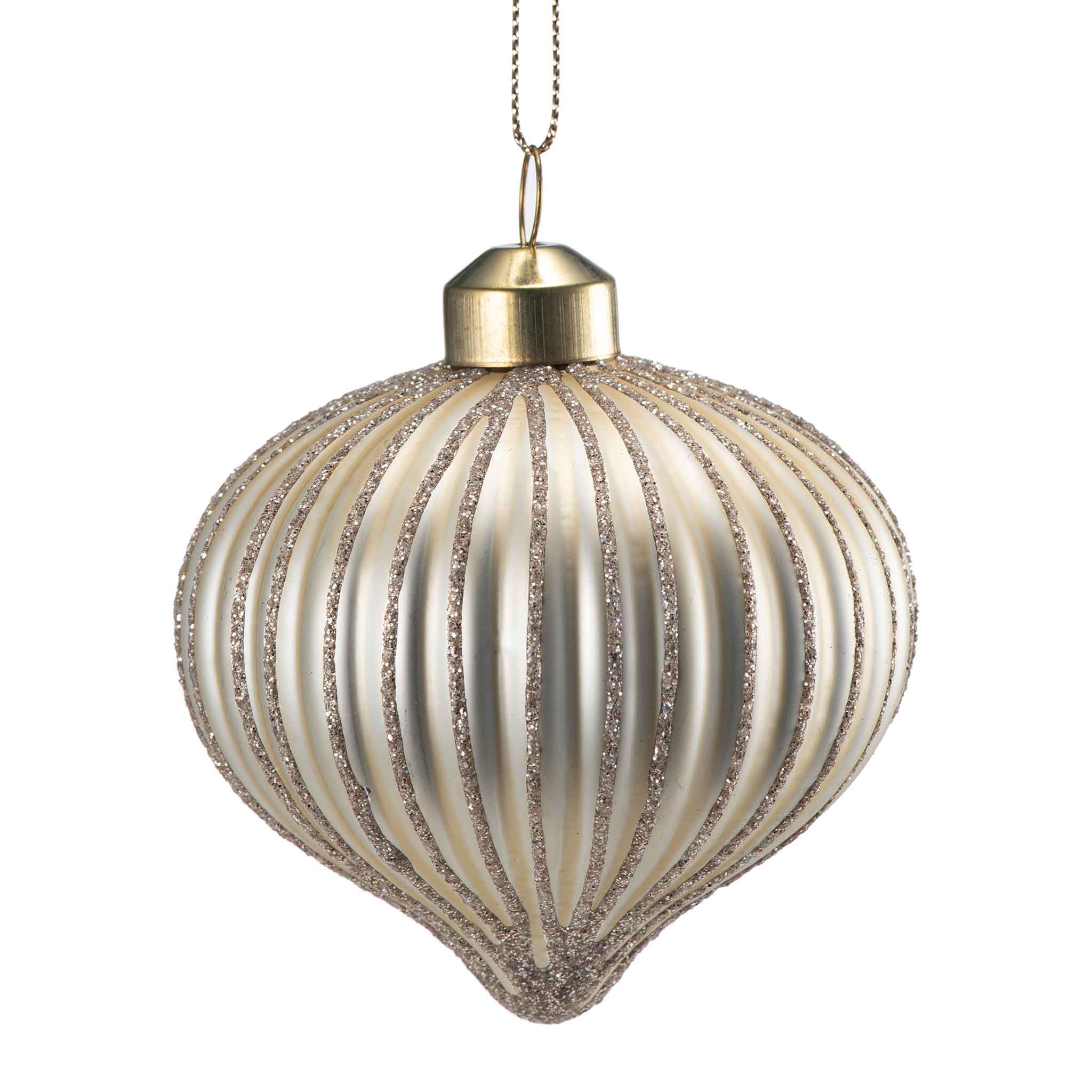 Gi juletreet ditt et elegant preg med vår julekule dråpe i gull! Dekorasjonen har en unik dråpeform som tilfører et stilfullt element til julepynten din. De glitrende stripene fanger lyset vakkert og skaper en skinnende effekt som gir treet ditt en luksuriøs glans.
