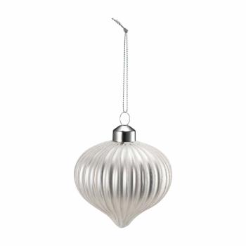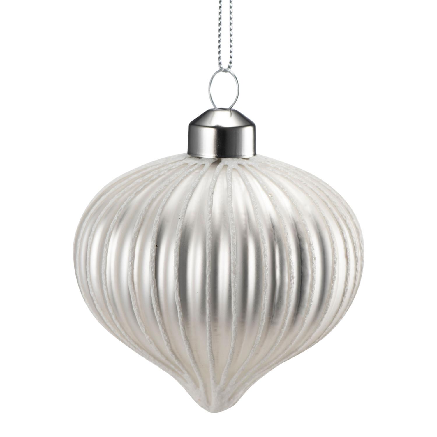 Nydelig hvit julekule i glass med riller. Morsom og leken form som passer perfekt på juletreet denne julen. Frisk opp og pynt et tre som gjenspeiler din smak og personlighet. Kombiner den gjerne med de andre fargene av julekule dråpe.