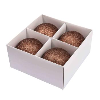 Super lekre julekuler i med fire stykk i pakken. Laget av plast og dekorert med glitter. Veldig flotte på juletreet, og kombiner de gjerne med julekuler i grønt eller gull for et komplett uttrykk.