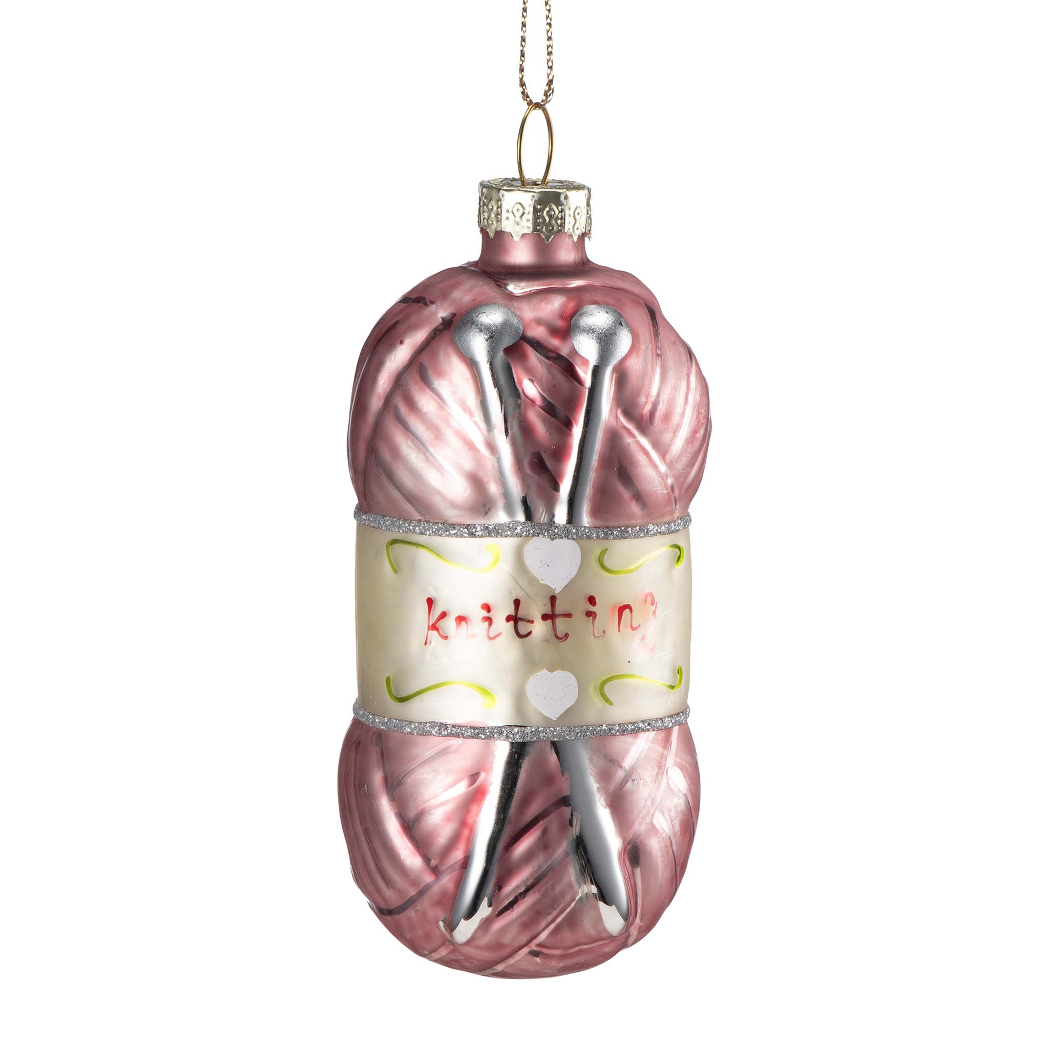 Morsom julekule formet som et rosa garnnøste. Perfekt å gi bort som en oppmerksomhet til den i livet ditt som elsker å strikke. Eller så er dette din sjanse til å gjøre ditt eget juletre personlig.