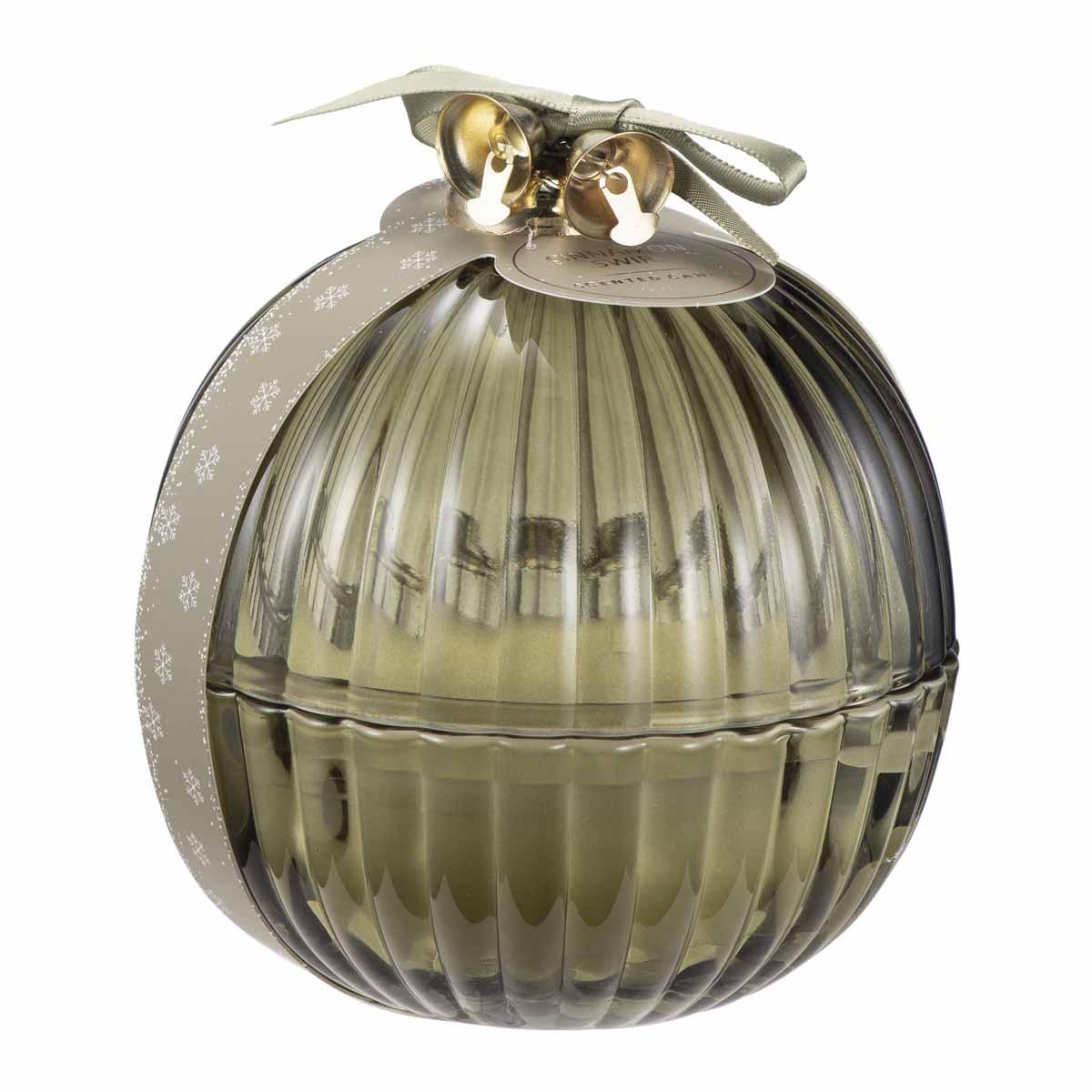 Duftlys i vakker glasskrukke formet som en julekule