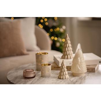 Dette lille treet i beige tilfører hjemmet en lun og sjarmerende detalj. Plasser det på bord, hylle eller i dekorasjoner, og kombiner gjerne med den større varianten for et helhetlig og harmonisk uttrykk. Utforsk også vårt juleutvalg for flere dekorative elementer.