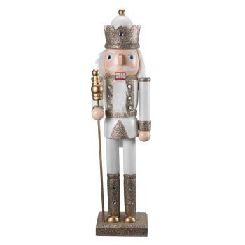 En hvit nøtteknekker med detaljer i glitterende gull gir en elegant touch til julepynten. Dent stilige designet gjør den til et vakkert midtpunkt på enhver festlig oppdekking.