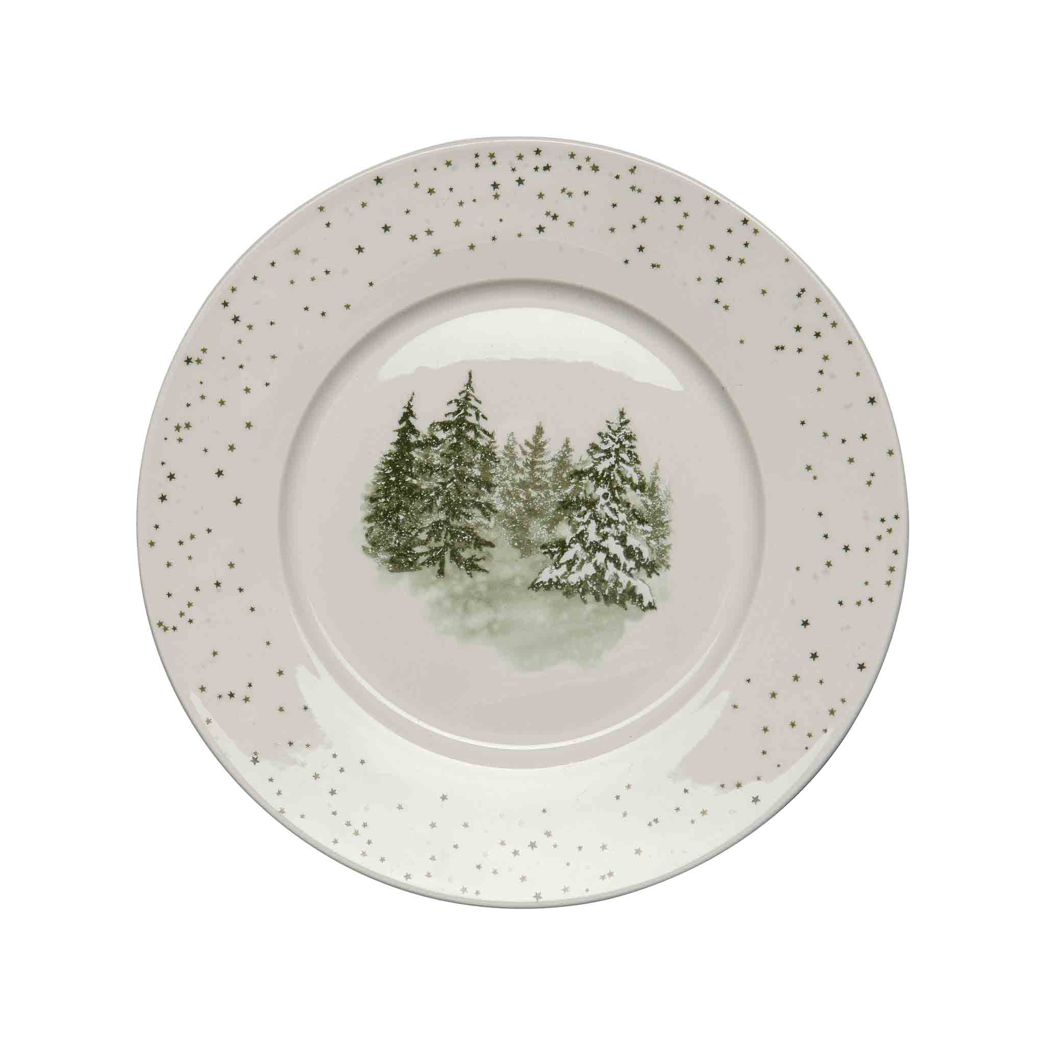 Koselig tallerken med julemotiv, en liten skog i midten og et dryss av glitterlignende dekor på kanten. Dette juleserviset, kalt "Julemagi", er ideelt for å legge til en ekstra dose stemning til julens mange måltider og festligheter. Så tilfør en lite dæsj julemagi til bordet, og gjør måltidene enda mer spesielle og minneverdige. Se hele Julemagi-serviset her.