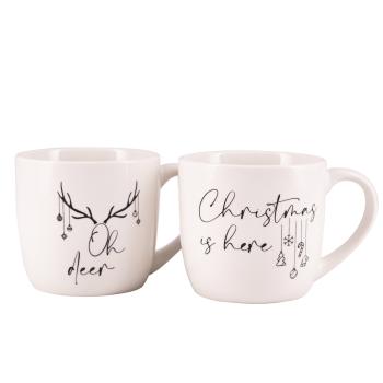 Nydelige hvite krus med julemotiv. Koppene er med på å skape julestemning i hjemmet og passer perfekt til morgenkaffen hele adventstiden og julen.