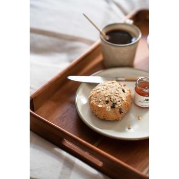 Serveringsbrett i akasietre som gjør seg lekkert på bordet. Gjør seg vel så lekker til å stå fremme som pynt og til oppbevaring på kjøkkenbenken.