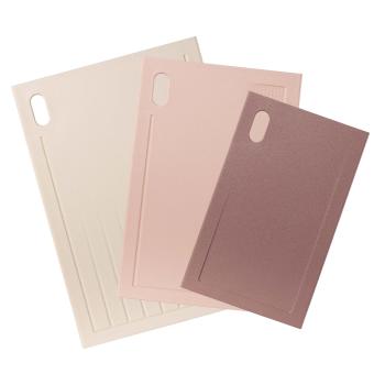 Dette settet med tre skjærebrett består av ulike størrelser og farger, laget for å passe til flere oppgaver på kjøkkenet. De er utstyrt med håndtak som gjør dem enkle å flytte mellom arbeidsstasjoner, enten du skal til komfyren eller vasken. Overflatene har innebygde spor som fanger opp væske, noe som er praktisk når du skjærer frukt, grønnsaker eller kjøtt. I tillegg har brettene et moderne design, som gjør dem både funksjonelle og enkle å rengjøre etter bruk.