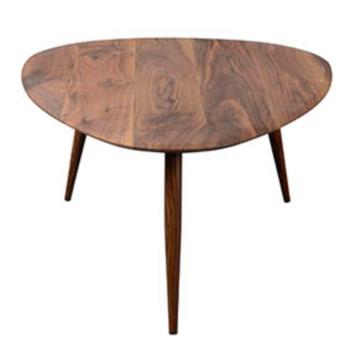 Stilig og moderne bord i valnøtt-finish. Den mørke fargen gir dybde til rommet, og formen gjør at den kan passes inn flere steder.