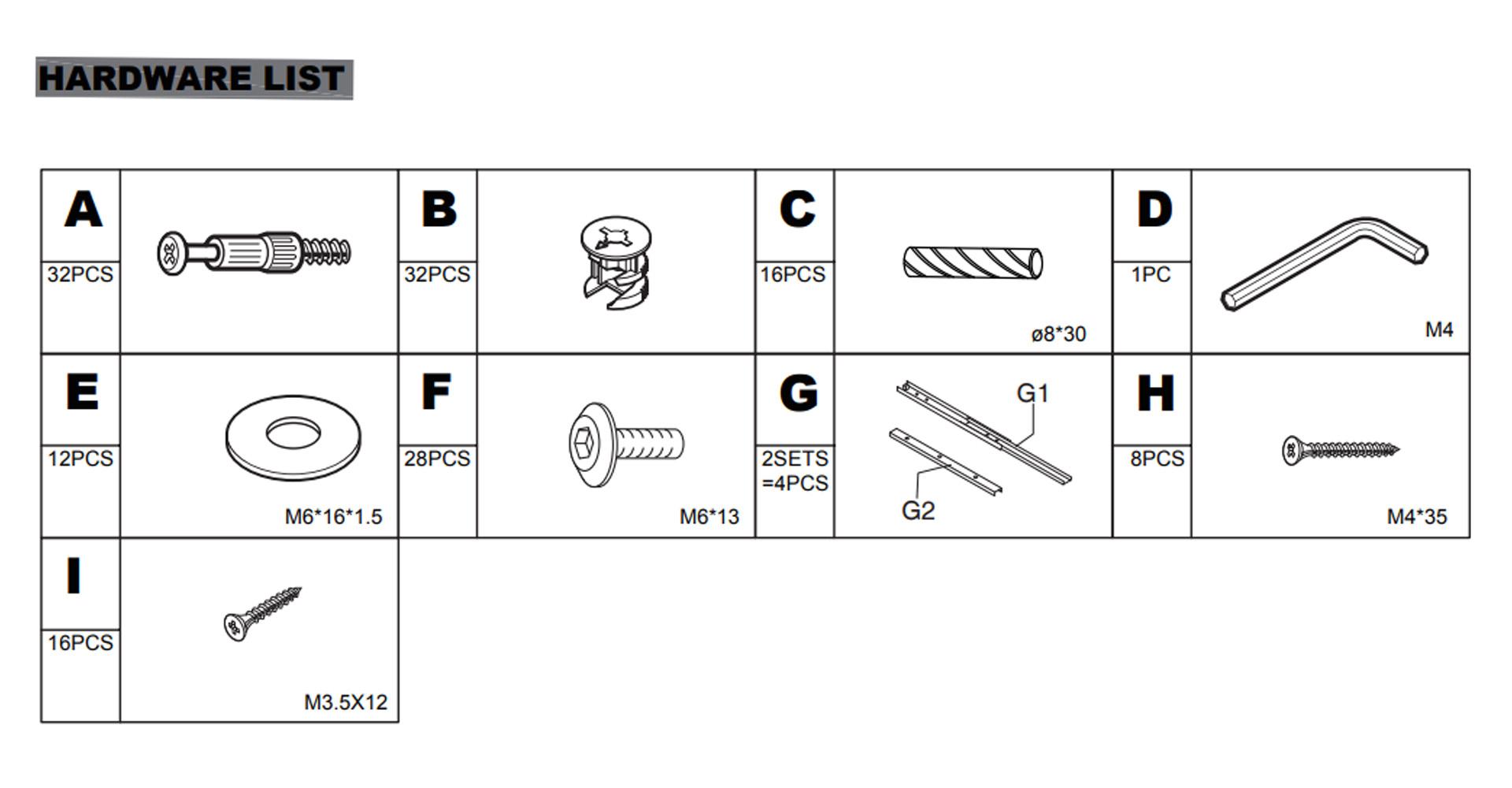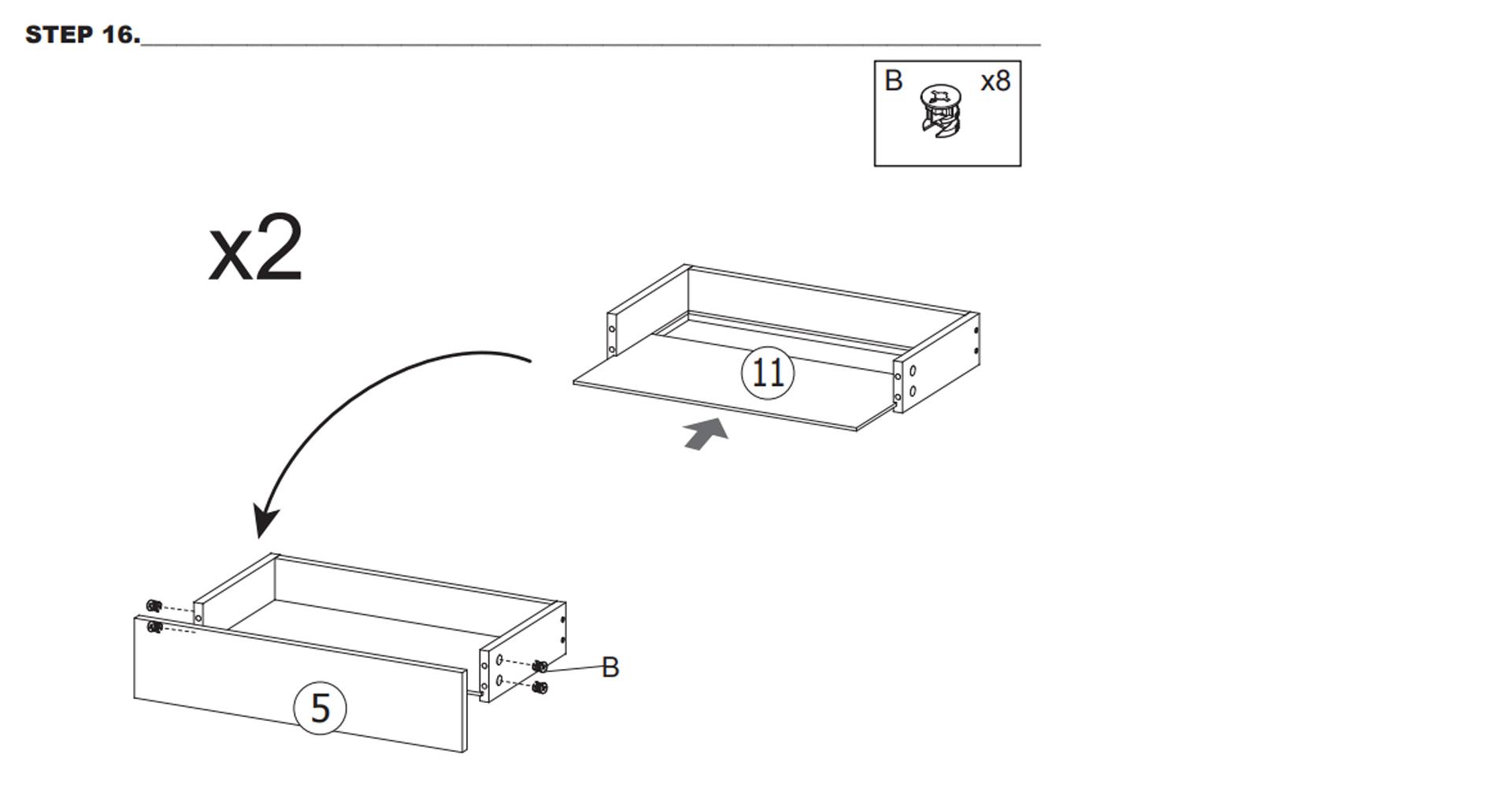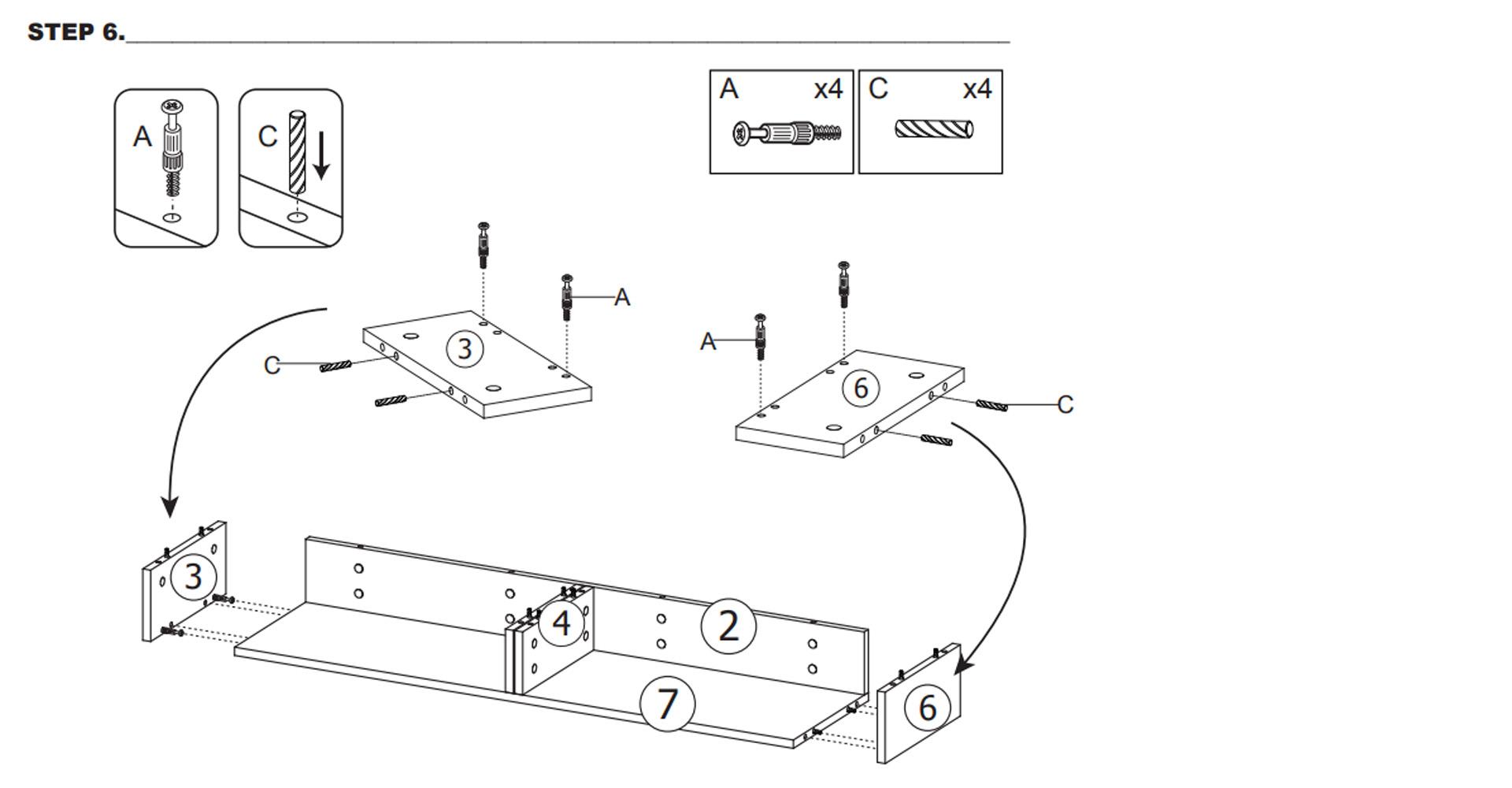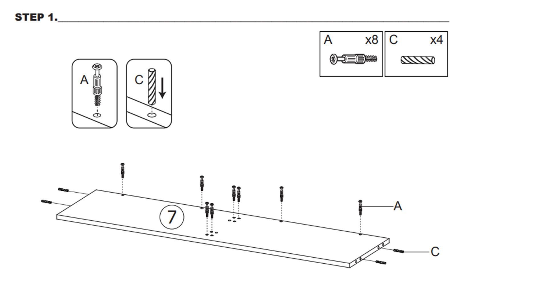 1. Kontroller at alle deler er til stede før du starter monteringen av møblene.