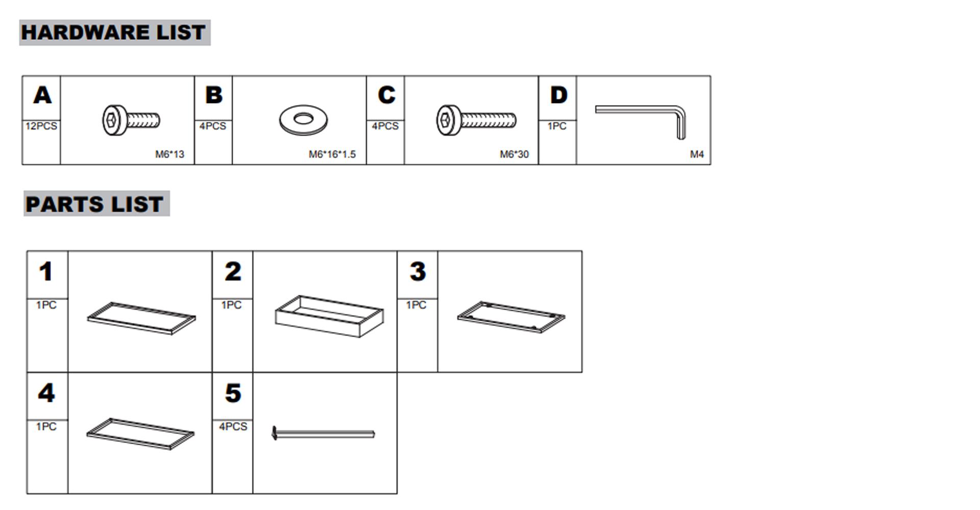 1. Kontroller at alle deler er til stede før du starter monteringen av møblene.