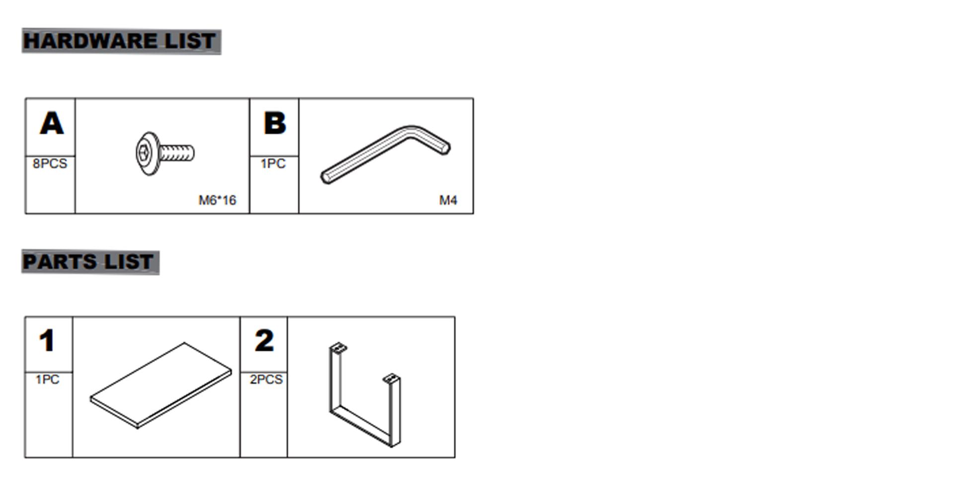 1. Kontroller at alle deler er til stede før du starter monteringen av møblene.