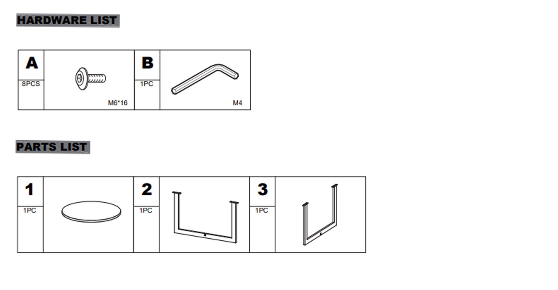 1. Kontroller at alle deler er til stede før du starter monteringen av møblene.