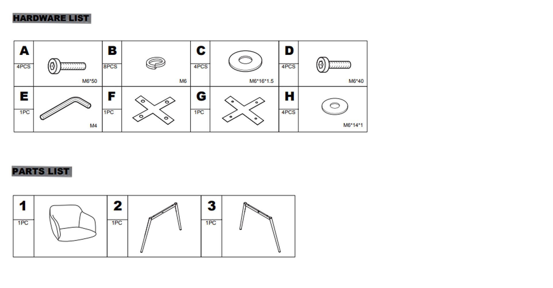 1. Kontroller at alle deler er til stede før du starter monteringen av møblene.
