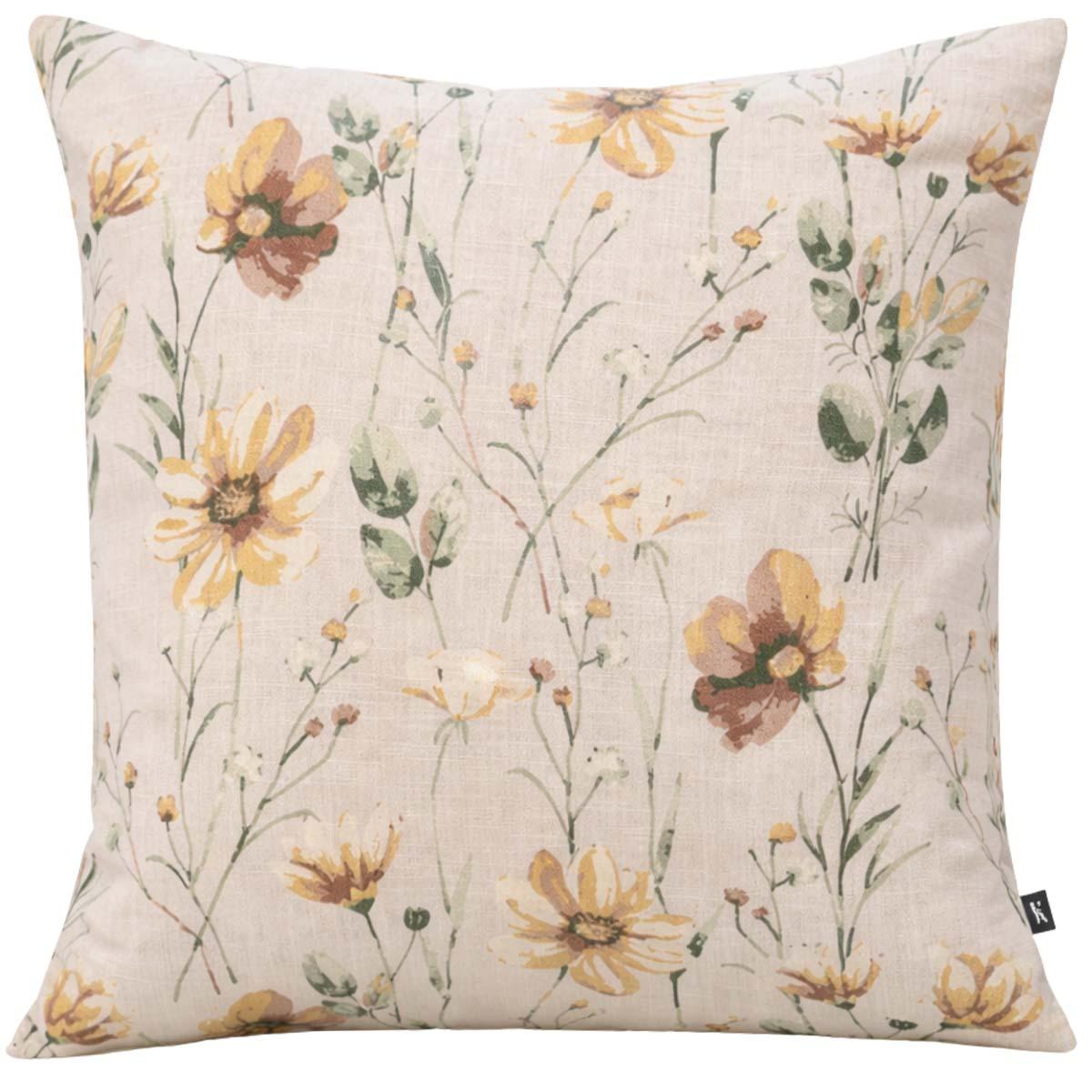 Pute med et lett blomstermønster som gir en myk og rolig følelse til sofaen, sengen eller lenestolen. Veldig fin i kombinasjon med ensfargede putetrekk i gult og grønt.
