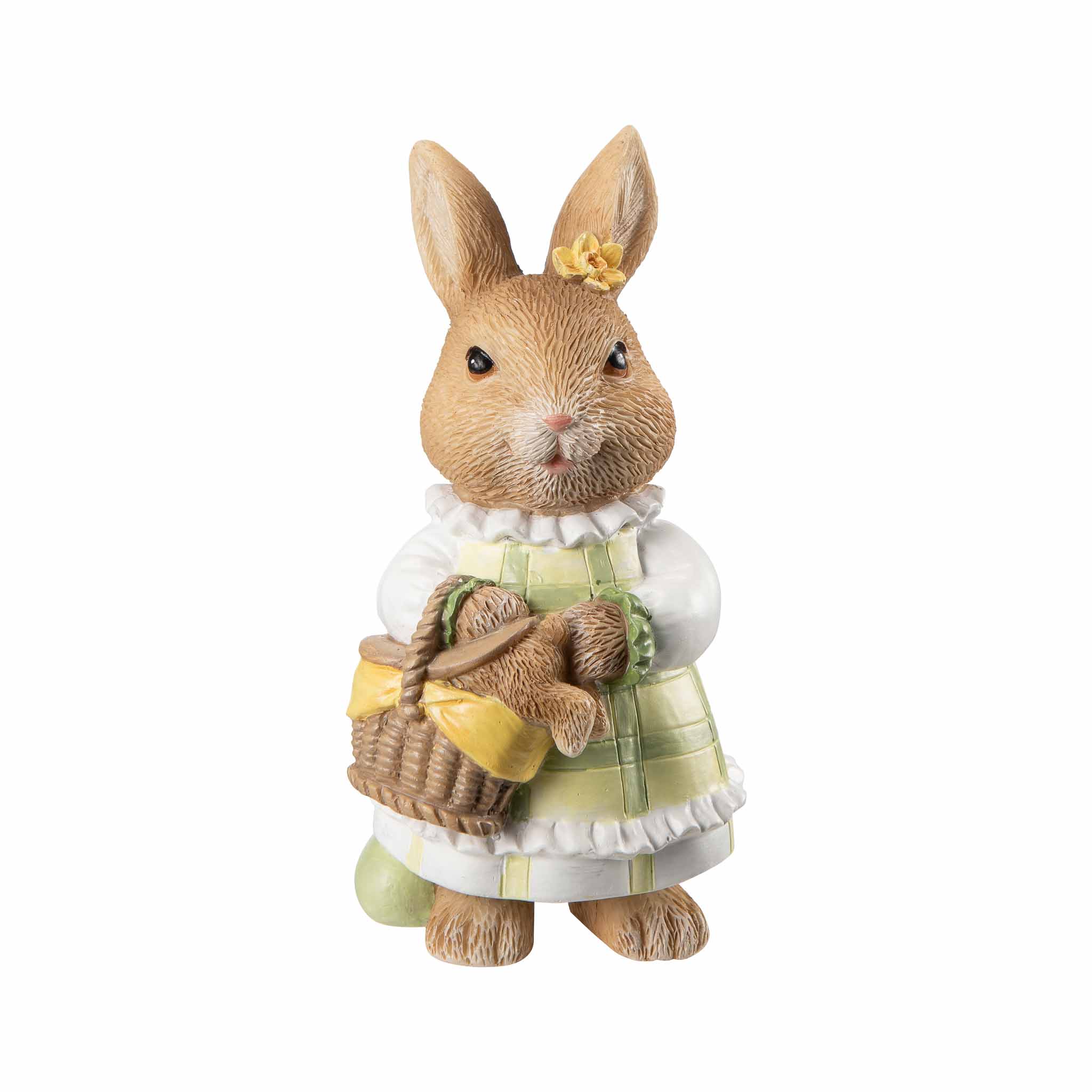 En søt og sjarmerende kaninfigur som gir påskestemning hjemme. De fine detaljene i pelsen og den milde fargepaletten gir figuren et varmt og lekent uttrykk.