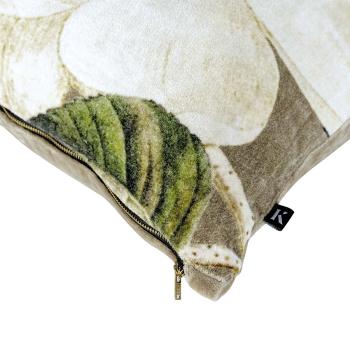 Store blomster i dempede toner gir en rolig og myk stemning i rommet. Putetrekket er i velur og passer godt sammen med andre puter i lin eller bomull. Kombiner med andre grønne nyanser sammen med nøytrale farger som brun og beige.