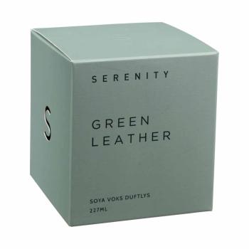 Duftlys Serenity Green leather fyller rommet med en fantastisk duft, prøv det ut sammen med et lysfat å sette det på. Glasset kan tørkes med fuktig klut.