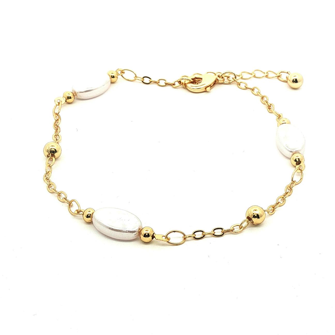 Nydelig, nett perlearmbånd. Dette kan du fint bruke alene men er også veldig fint med andre armbånd. Gullbelagt messing.