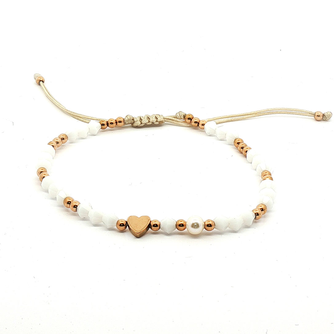 Nydelig, justerbart hjerte-armbånd ,som kan brukes klassisk eller sammen med gulllenker og andre kjeder. Gullbelagt stål med hvite stener.