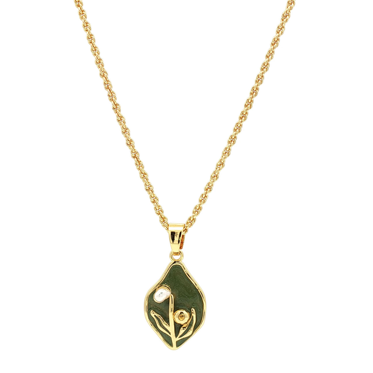 Vintage smykke i nydelig grønn emalje en bitteliten perle. Gullbelagt messing