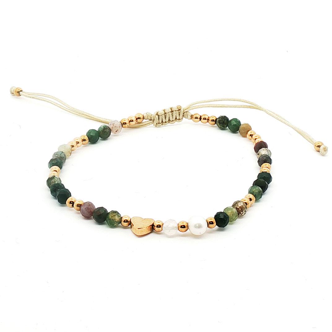 Knytearmbånd med grønne stener