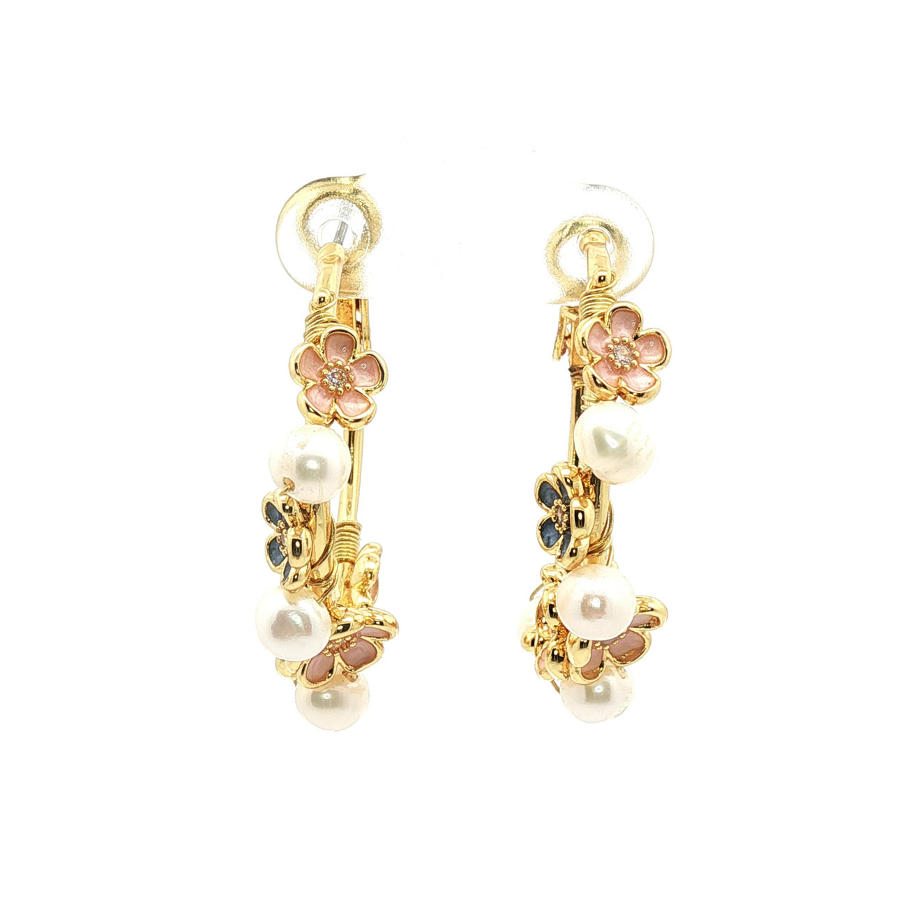 En sommerdrøm av en øredobb! Nydelige emaljerte blomster på en gullplattert ring, ispedd perler.