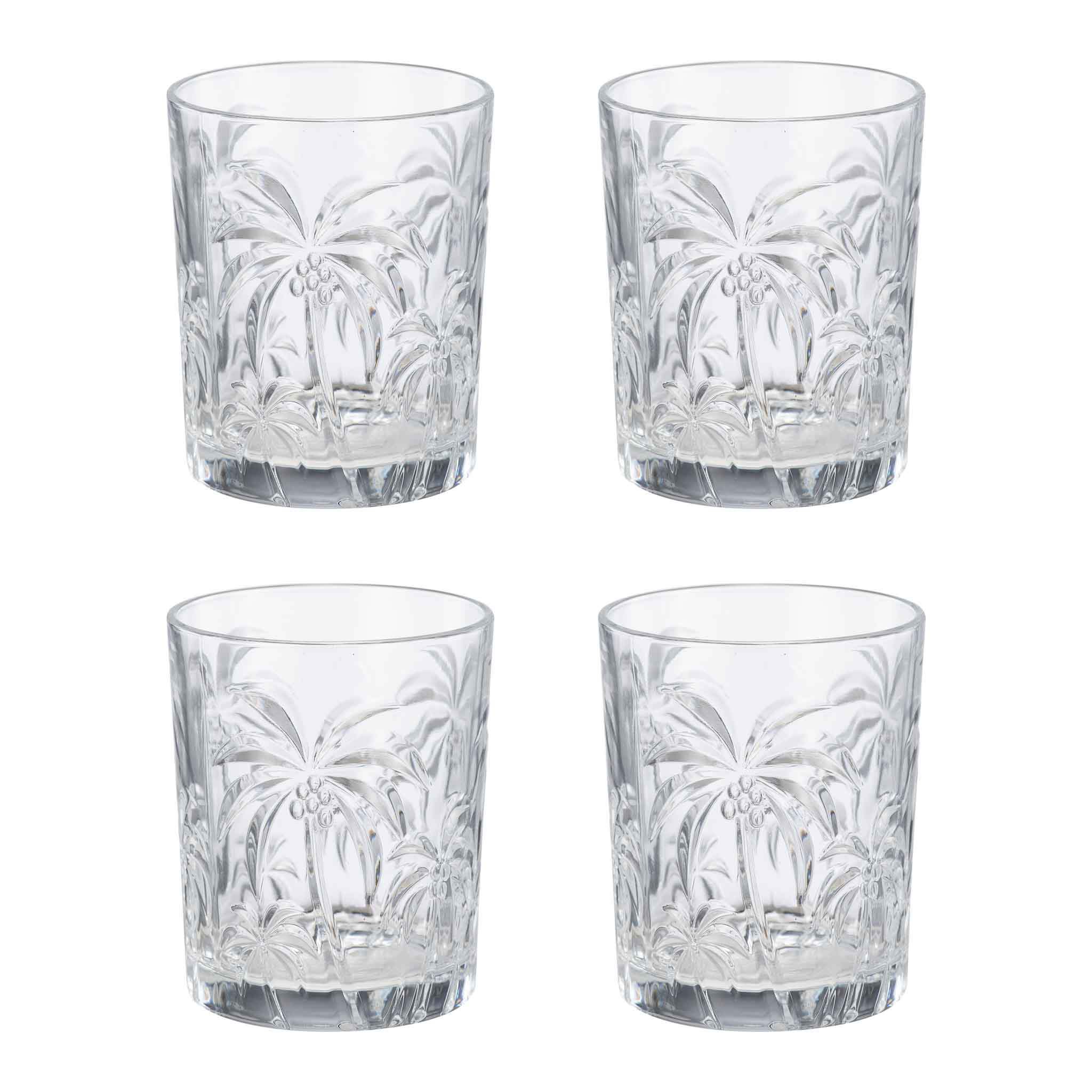 Gi borddekkingen et hint av tropisk stemning med disse dekorative glassene med palmemønster. Settet passer like fint til hverdags som til fest, og er perfekt når du vil dekke et bord med det lille ekstra. Enkle å kombinere med både fargerike og nøytrale serviser.