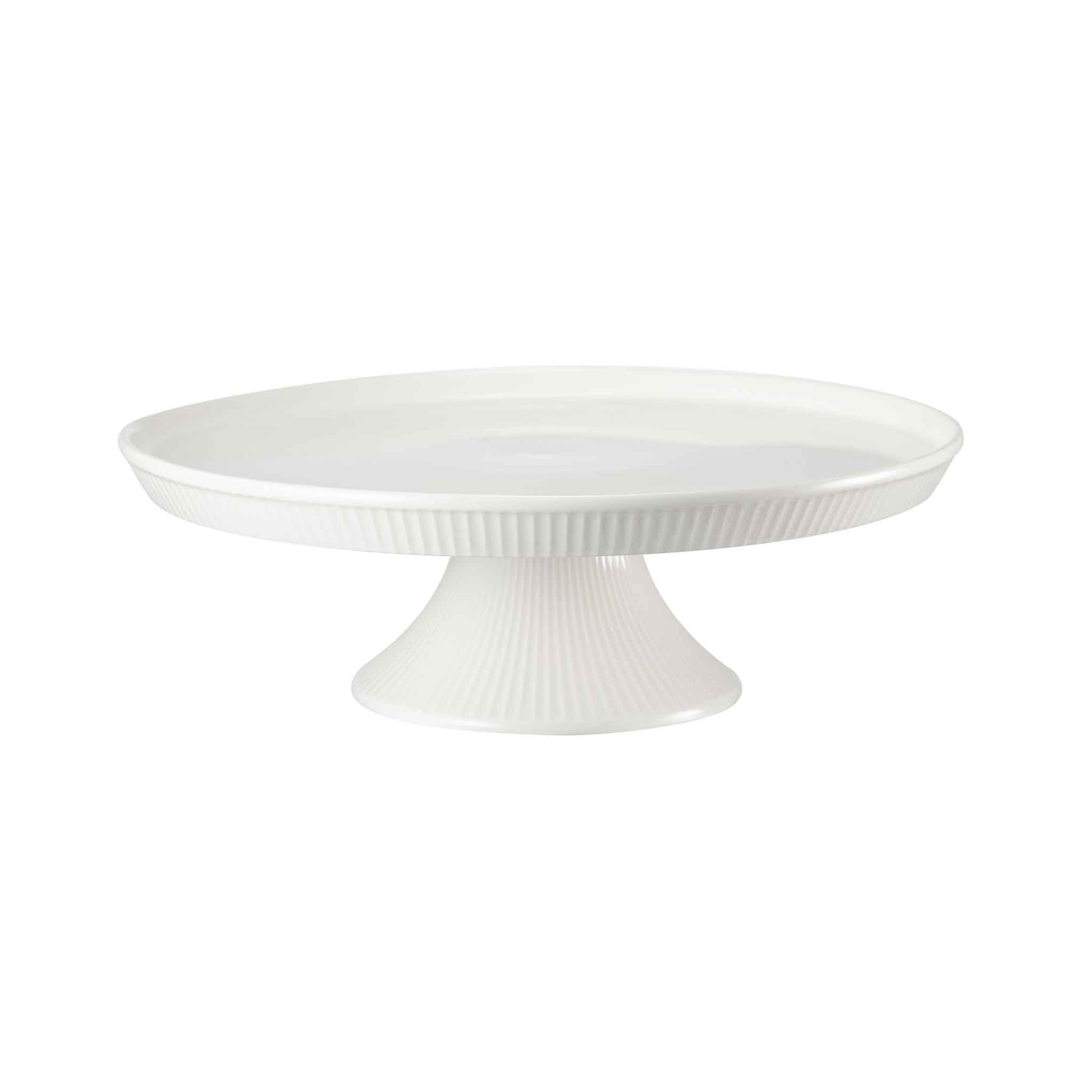 Elegant kakefat med fot som bokstaveligtalt løfter serveringen. Rille detaljen gir et klassisk og stilrent uttrykk, mens den brede flaten gir god plass til kaker, paier og bakverk.