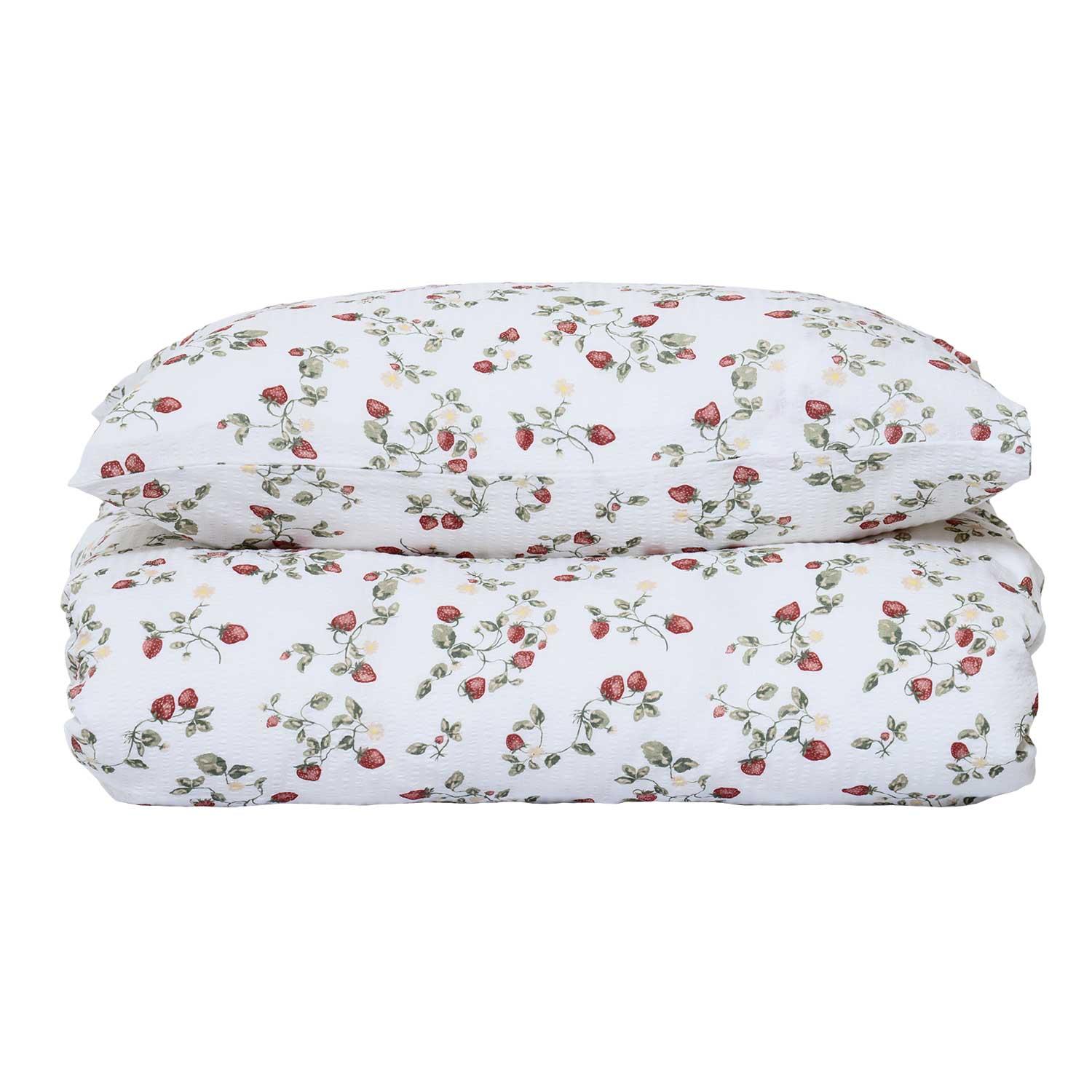 Sengesett krepp Strawberreies 140x220 cm