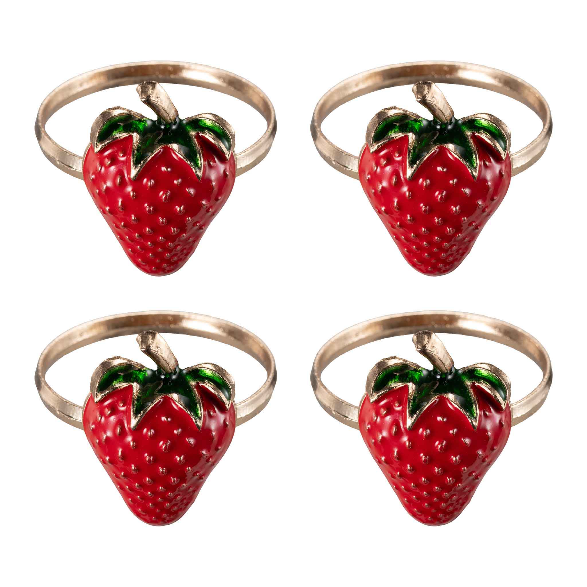 Et sjarmerende sett med serviettringer. Perfekte for å sette et lekent og sommerlig preg på borddekkingen. Serviettringene holder serviettene pent samlet og blir samtidig en dekorativ detalj som gjør det lille ekstra. Kombiner dem gjerne med ensfargede servietter for å la jordbærene virkelig få skinne på bordet.