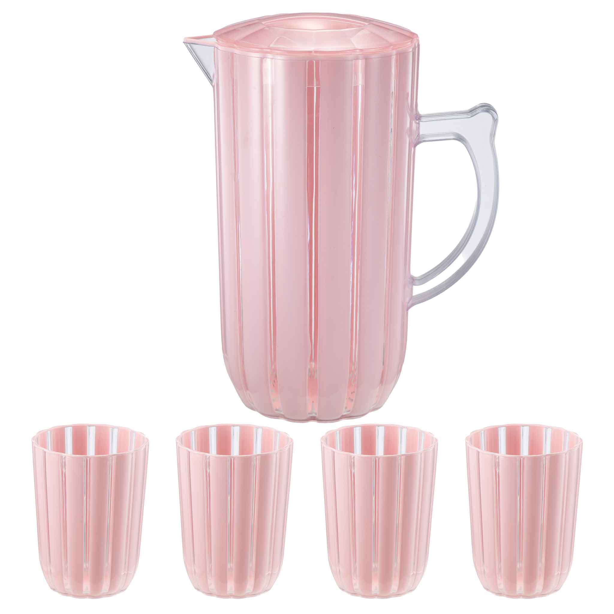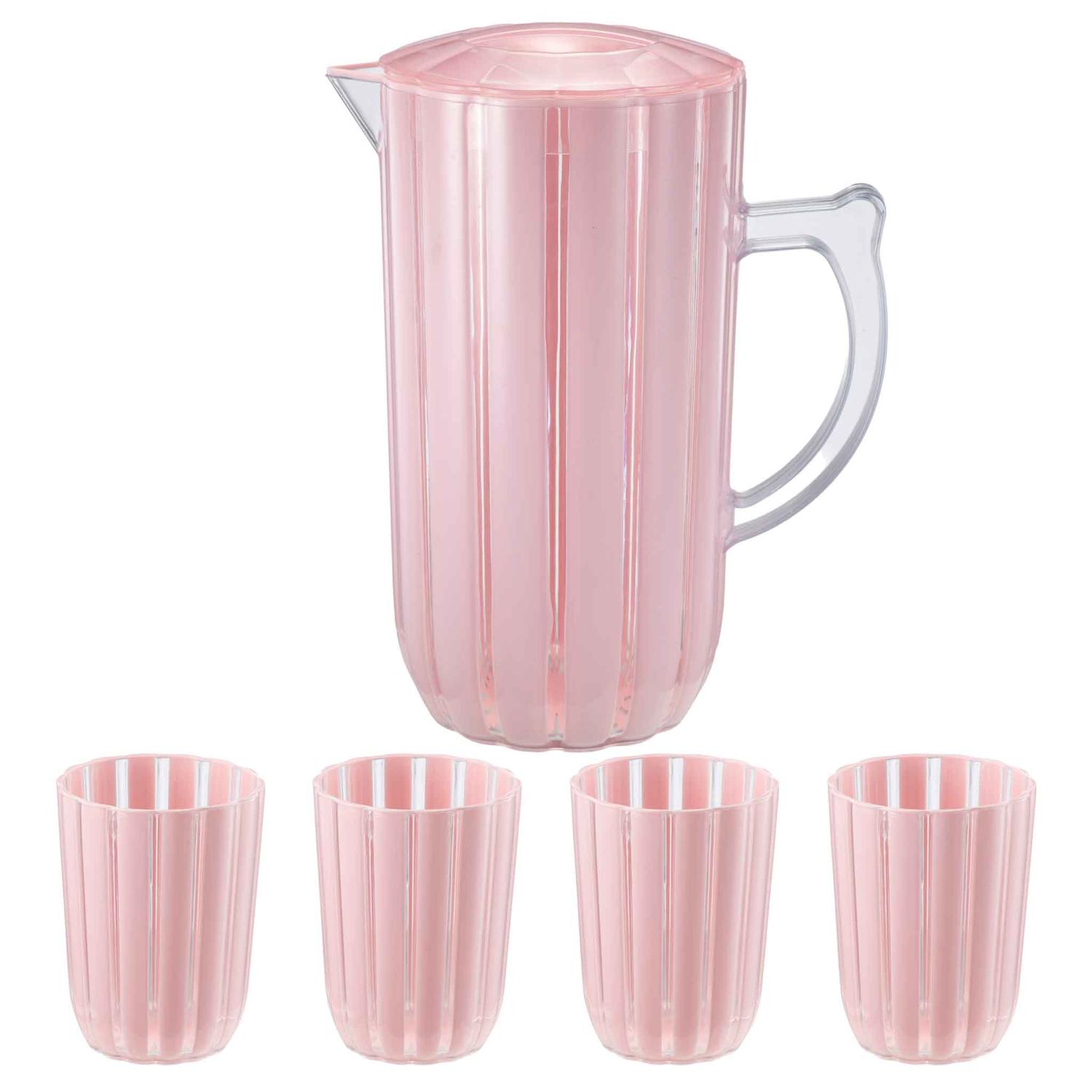 En fint og praktisk sett bestående av vannkanne med 4 matchende glass i delikat rosa utførelse. Perfekt til både inne- og utebruk, som for eksempel til piknik, hagefest, camping eller på terrassen.
