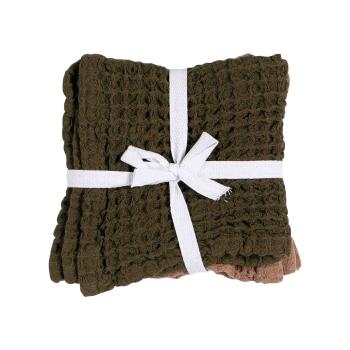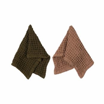 Disse kjøkkenklutene i grønn og brun farge er laget av 100 % bomull og har en elegant vaffelvevet struktur. De er både myke og slitesterke, perfekte for å tørke opp søl og rengjøre overflater. Settet inneholder to kluter som kombinerer funksjonalitet med stil, og gir kjøkkenet ditt et fargerikt løft.