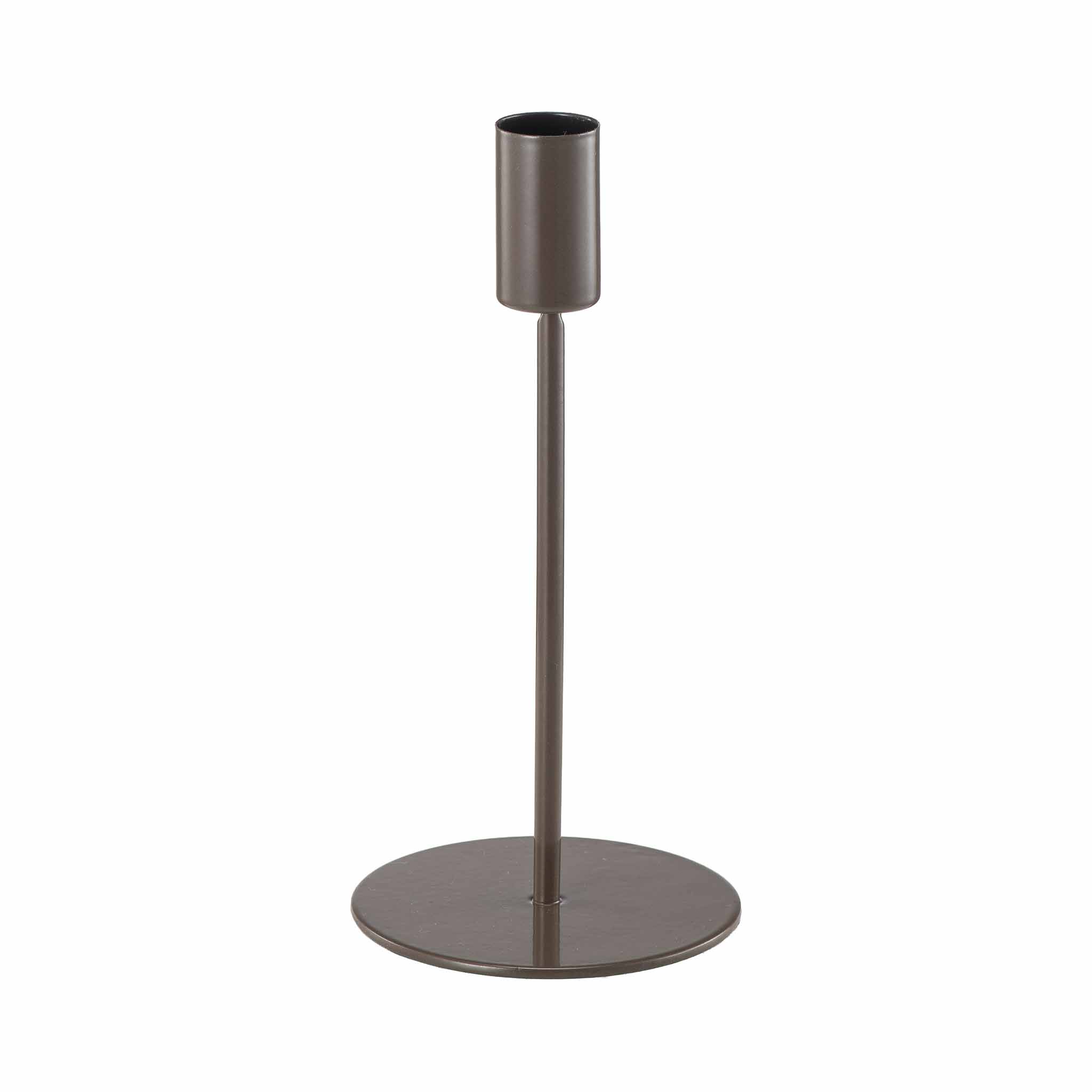 Denne slanke lysestaken i metall har et rent uttrykk som passer godt inn i mange typer interiør. Den smale formen gir høyde til bordet eller hyllen uten å ta for mye plass, og den stabile foten sørger for at lyset står stødig. Fin alene for et dempet uttrykk, eller kombinert med flere lysestaker i ulike høyder for et mer levende oppsett.