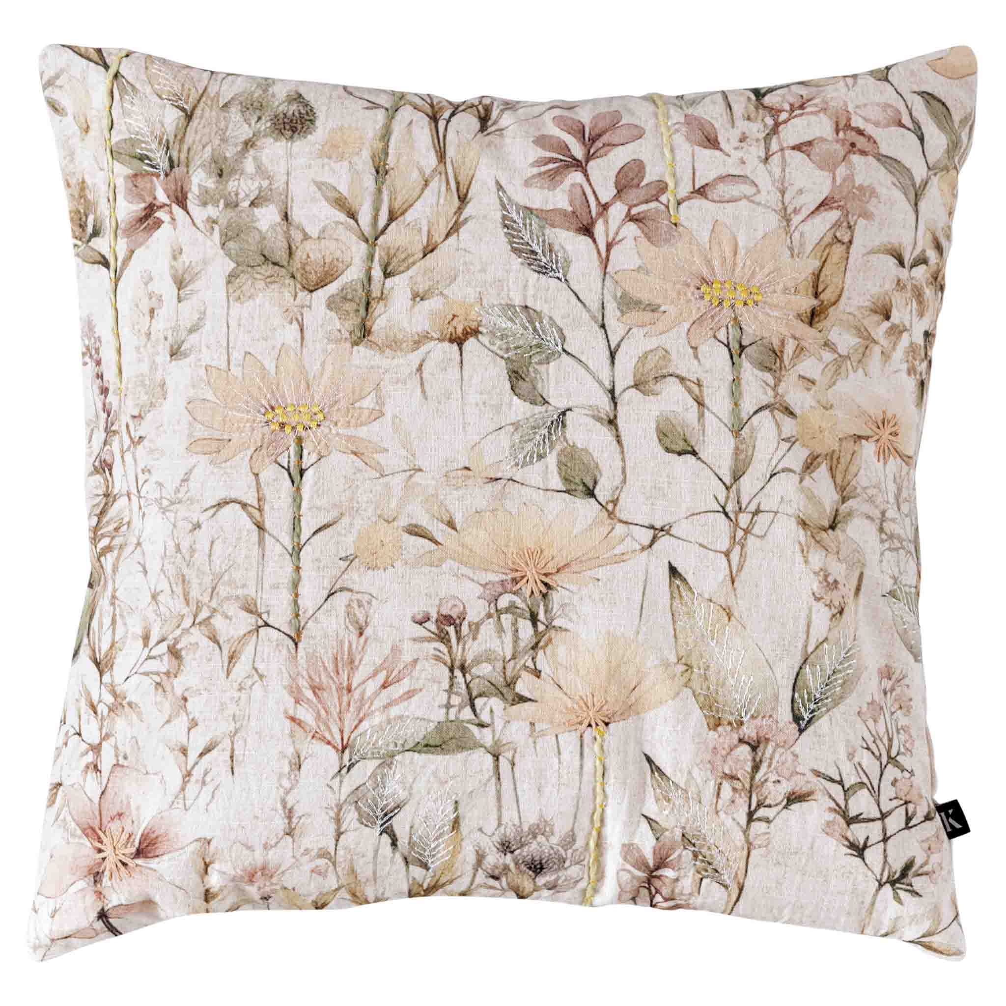 Putetrekket med mykt blomstertrykk i varme naturtoner som gjør sofaen rolig og innbydende. Det gir rommet et hint av vårfølelse uansett årstid. Kombiner det gjerne med ensfargede puter i beige eller grønt, for en behagelig og lun stemning.