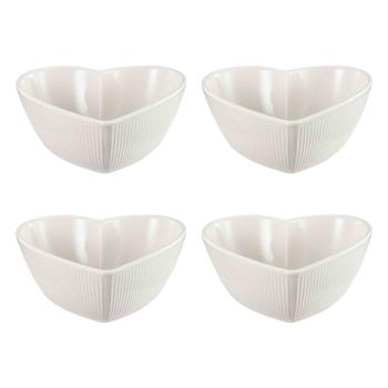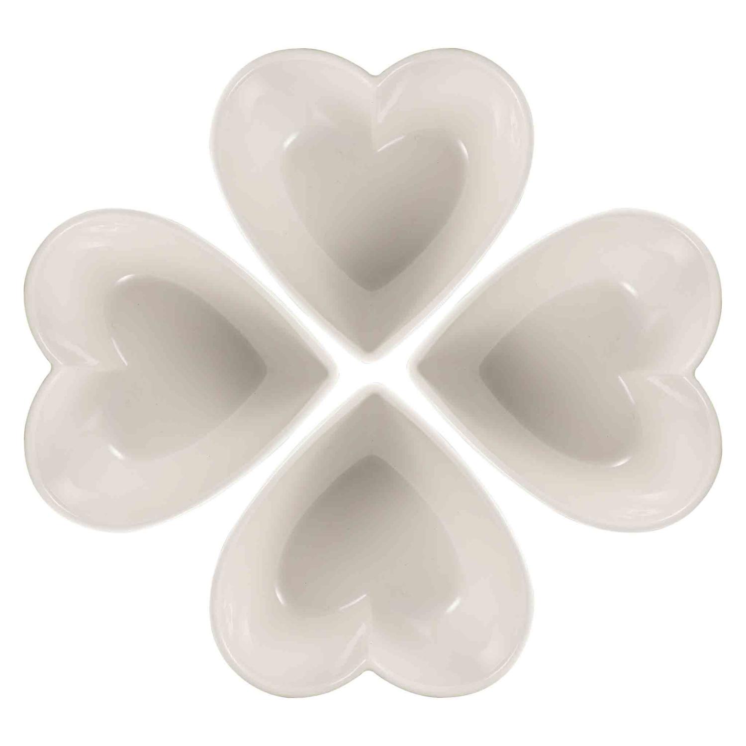 Dette nydelige skålsettet består av hjerteformede skåler som sprer både glede og varme på bordet. Perfekt til servering av snacks, nøtter eller smågodt, eller bare som en søt dekorasjon.