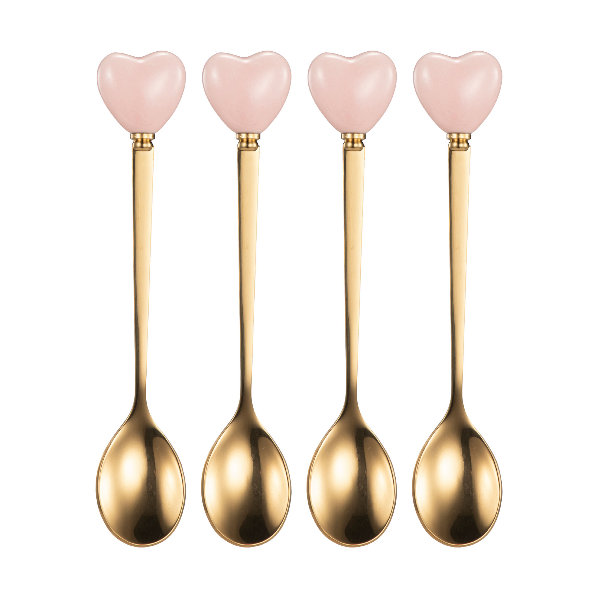 Søte skjeer med små rosa hjerter på toppen. De passer perfekt til desserter. Også fine i kaffekoppen. Dette er skjeer som får gjestene til å smile før de i det hele tatt har smakt på noe.