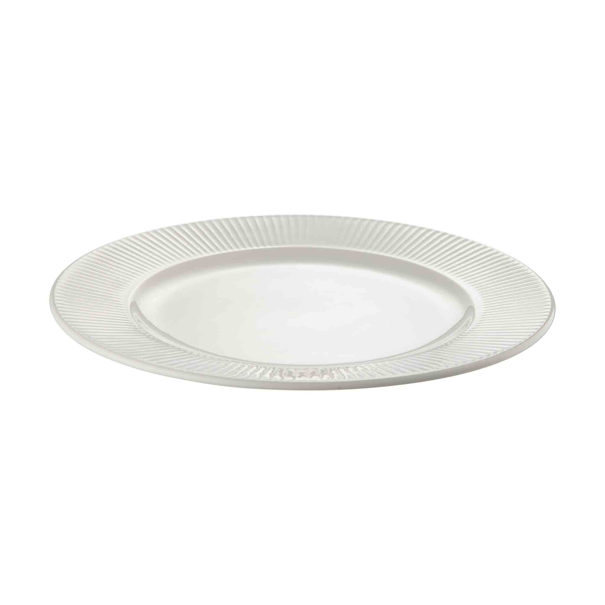 Nydelig hvit middagstallerken i benporselen med dekorative riller på kanten av tallerkenen. Et klassisk servise du vil ha glede av år etter år, til både hverdag og fest. Se hele Thilda servise her.