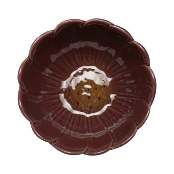 En nydelig liten skål i burgunder, formet som en blomst, gir et vakkert preg til enhver borddekking. Den er ideell til sukker, krydder eller oljer, og kan også brukes som en liten dekorasjon i seg selv. Skålen kommer i flere farger, så du kan velge å sette dem sammen som et sett eller bruke hver enkelt for seg. Dette gjør det lett å variere etter anledning og stemning.