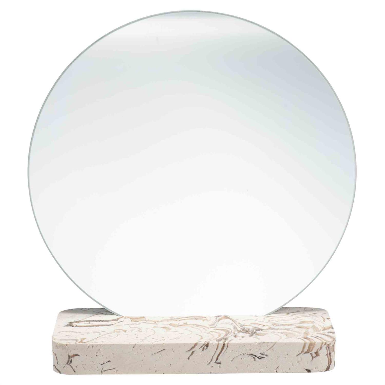 Elegant rundt bordspeil uten ramme, perfekt på sminkebordet eller som dekorativt innslag i interiøret. Utforsk hele Helene kolleksjonen vår for å mixe og matche tilbehør til speilet!